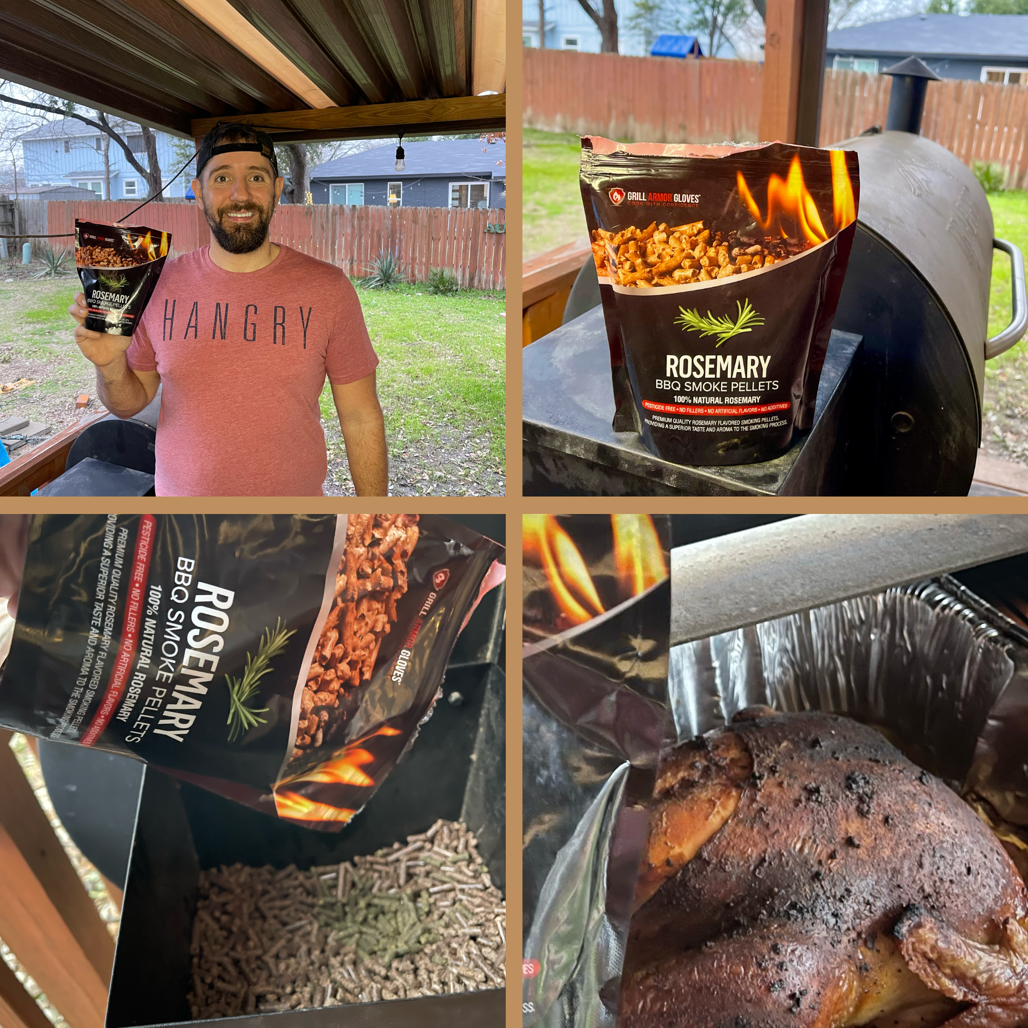The rosemary herb pellets are made to be used with other wood pellets as a to elevate your BBQ game. Simply load the pellets (about 10% to 15%) into your smoker’s pellet hopper, wait for the smoker to come to your desired temperature, and start infusing meats with delicious flavor